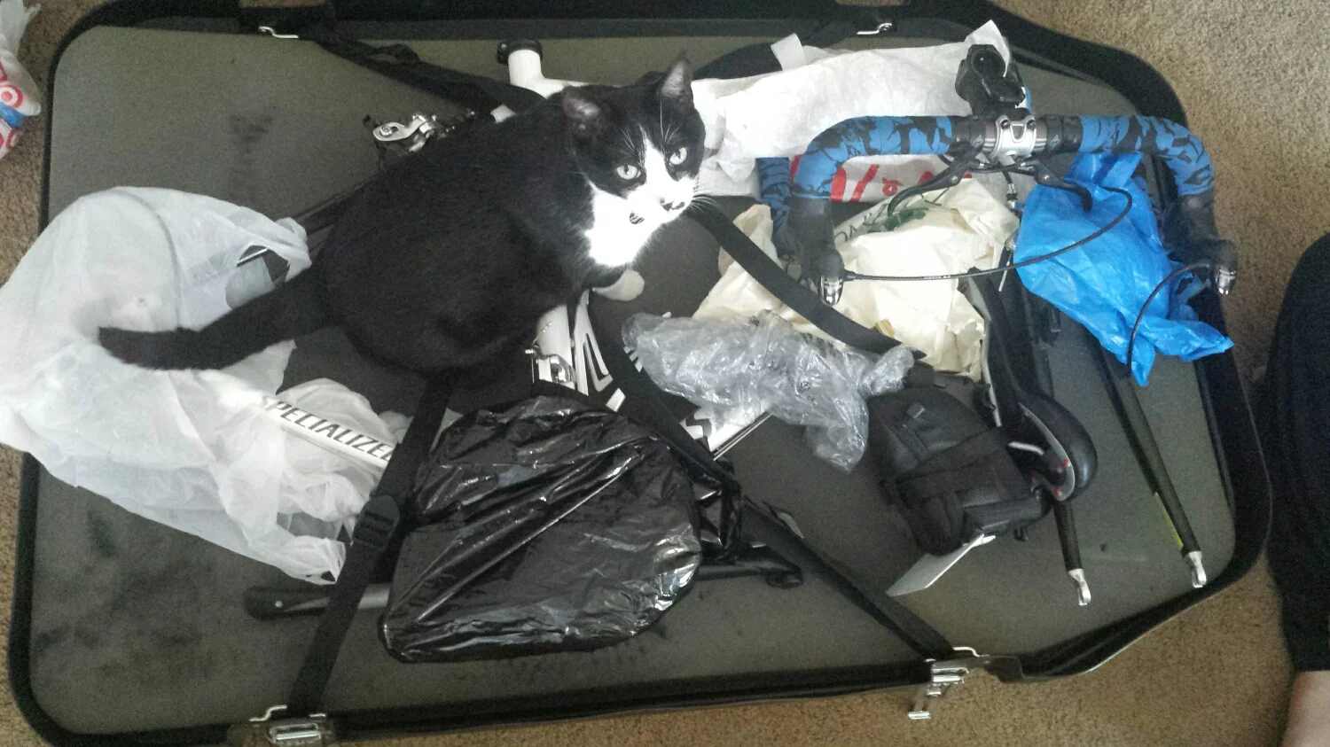 I bought my road bike at a time before airlines charged extra fees for all checked bags. I traveled a lot that time, and invested in a hard plastic case for transporting the bike. I purchased a case that happened to be smaller than standard bike cases at the time, and much smaller than the cardboard boxes many use to fly with bikes. I regretted purchasing such a small case at first, because I have to remove the front fork and handlebars and tuck the derailer in like a dog with its tail between its legs to get the bike to fit. The box paid for itself in a matter of a few trips however when airline agents looked at the box and said, “Is that a bike? It’s so small I won’t charge you.” Later on it became, “Is that a violin? An upright bass? Did you know there is no fee for over-sized musical instruments, but the fee for sports equipment is $80?” Followed by lots of winking. Then standards changed and we had to pay for everything outside of a carry-on. It quickly became cheaper for me to rent $10,000 demo bikes for the weekend than ship my own. I haven’t traveled with my bike for many years. Sadly, all demo bikes were spoken for in all of Western Pennsylvania, so I am flying my own bike this time. I dusted the cobwebs off the ole’ case and got the bike all settled inside. It took me a long time to pack it in. Now that I am older and wiser I paid attention to keeping the greasy bits contained and the touching bits protected. Tiny scratches and dents span my entire bike now, most of which happened when the bike was in transport.