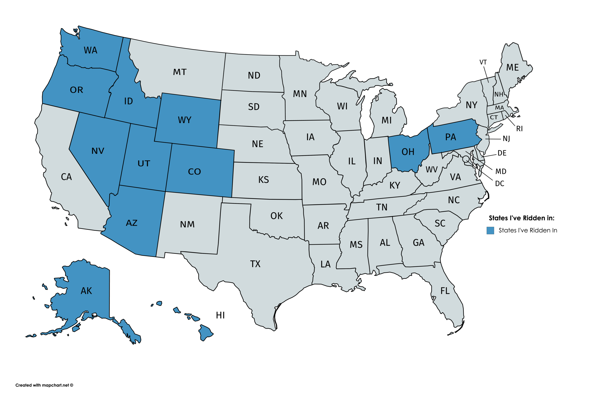 I spend a lot of time thinking, "What's next on the bike?" Long ago, I had an idea of riding an MS ride in every state. But with limited time off and many rides happening on the same weekends, it would be a long time before I could hit all the states. On top of that, I'd have to more than triple the amount of fundraising I do. It occurred to me that I could just ride the states on my own. Sure, I wouldn't be putting money to a charitable cause, but maybe I could plan out a way to simply promote bicycle transportation, if nothing else. It seemed like a pretty attainable goal. Then I mapped out how many states I have left. Hm, maybe this goal isn't so attainable after all. Still, if I start mapping out a plan now, I'd be one step father to doing it.