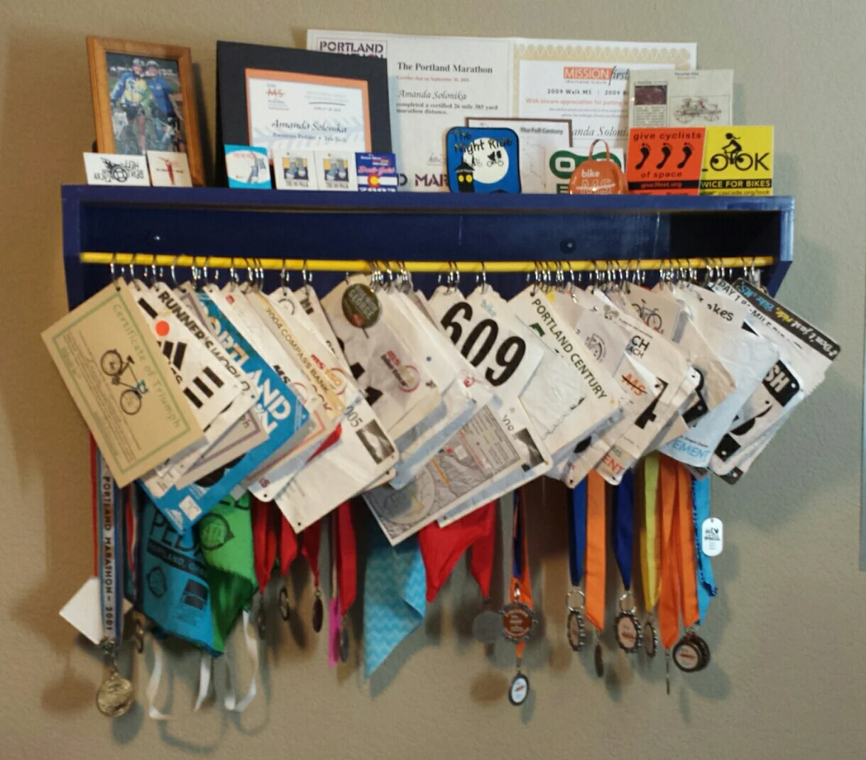 I am a nostalgic person, and I like to save things that are important to me. I am the person that saved my academic fitness award from 6th grade, my varsity letters from high school, and every thank you I've gotten for every volunteer project. It was only fitting that once I started participating in big athletic events that I save mementos from them, too.